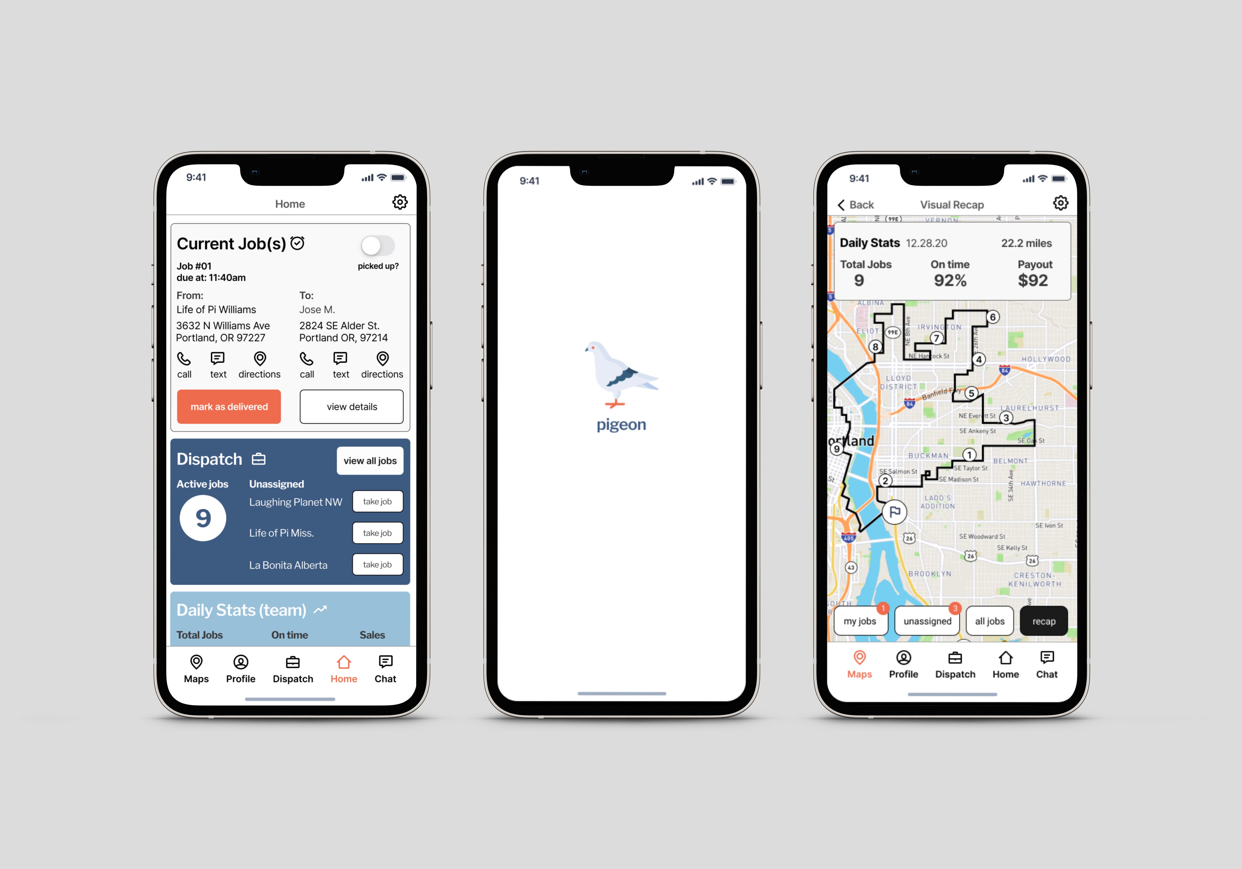 Pigeon Courier is a mobile app for bicycle couriers I designed during my Thinkful UX bootcamp. Pigeon was designed as a bicycle friendly alternative to the big delivery apps (DoorDash, UberEats). Some of the features inside of Pigeon were modeled after a smaller courier app called Twinjet.